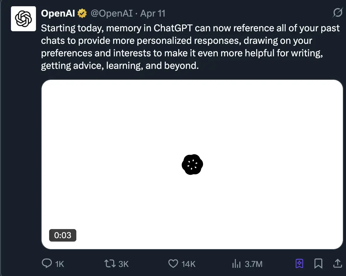 在这一切发生的同时,许多人开始思考:“如果有这么多利用中心化技术的代理应用程序,我的数据归谁所有?我的数据会去哪里?如果我和AI讨论一些私密的事情,它会保密吗?还是会流向其他地方?”这尤其重要,因为 @OpenAI 最近的更新中,ChatGPT的记忆功能可以引用你所有过去的聊天记录,以提供更个性化的回应。