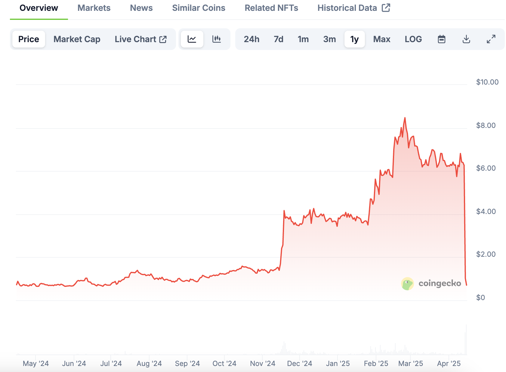4月14日凌晨,MANTRA代币OM价格突发剧烈下跌。据CoinGecko数据,过去24小时OM价格暴跌89.2%。