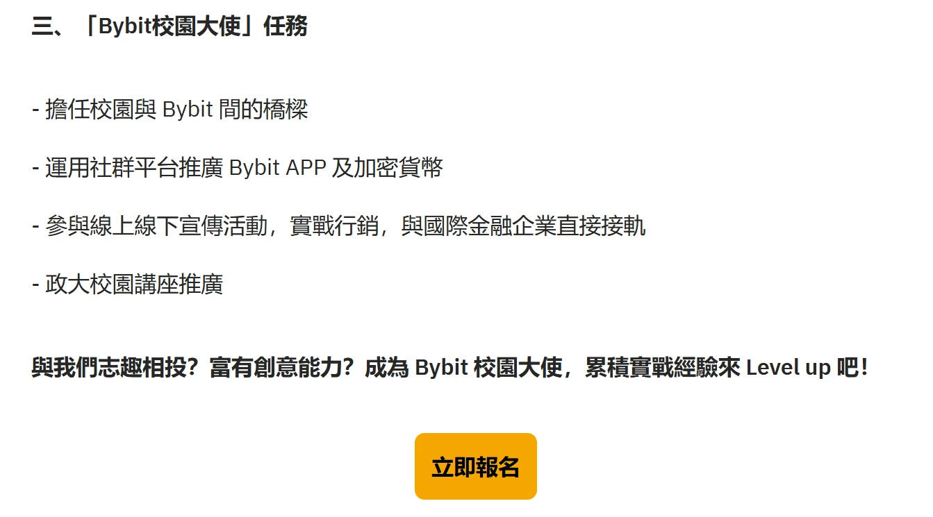 Bybit 校园大使招募公告部分信息