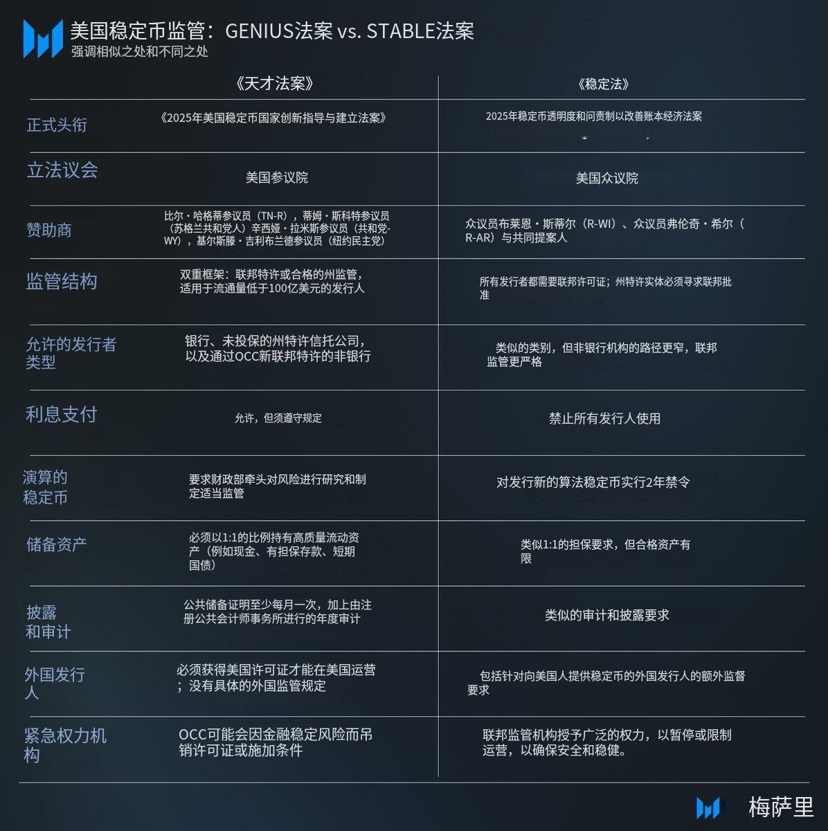 国会推进了两项稳定币法案:参议院的 GENIUS 法案和众议院的 STABLE 法案。