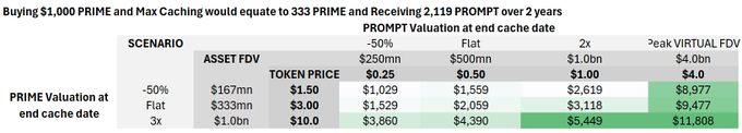 下表在质押期结束时,将这一数字应用于PRIME和PROMPT的估值场景: