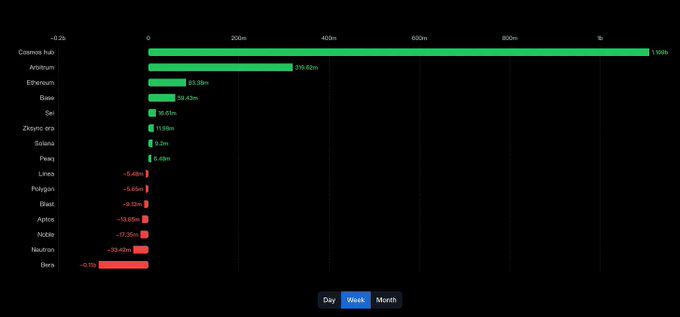 ( 5) 最近 1 周 Cosmos hub 跨链流入 11 亿美金
