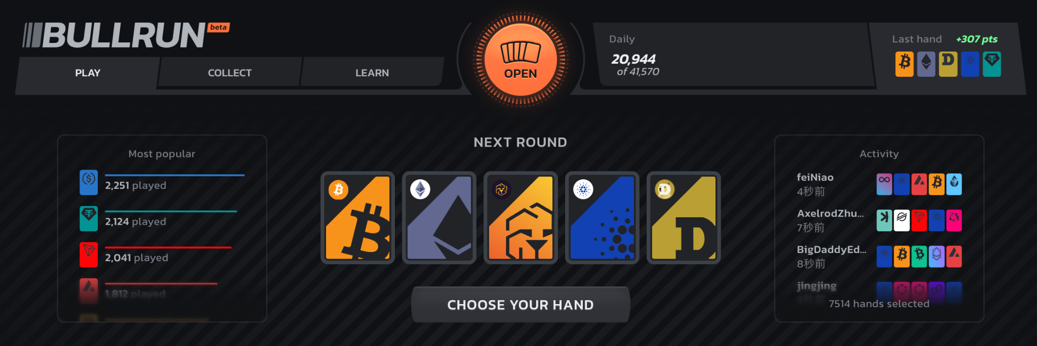 玩加密卡牌戏不花费GAS,每24小时玩一次,当天开奖。每天会有100万个Bulls积分分发给排名前2500的地址,Bulls积分是未来的代币激励凭证。而每周、每赛季会开大奖,这是一个可以几乎零成本去撸积分的方式。 https://app.infinex.xyz/play/bullrun/learn