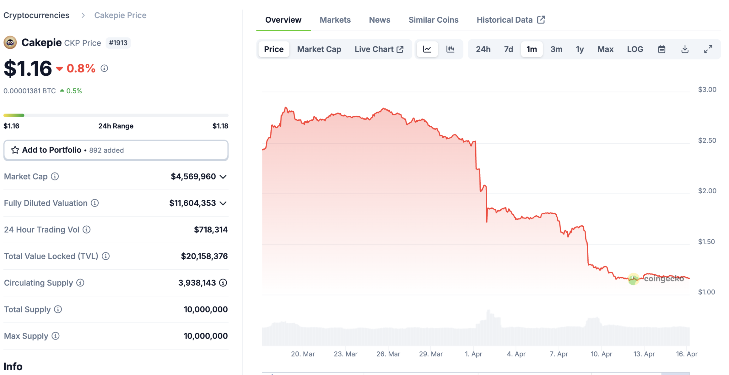 4 月 16 日,PancakeSwap 官方成员透露,他们正在与 Cakepie DAO 进行密切沟通,并愿意提供 150 万美元补偿 CKP 持有者,该贴文得到了赵长鹏的鼓掌回复。但 CKP 即使在暴跌之后 FDV 仍然超过 1000 万美元,流通市值 400 万美元也高于 150 万美元的补偿金额。