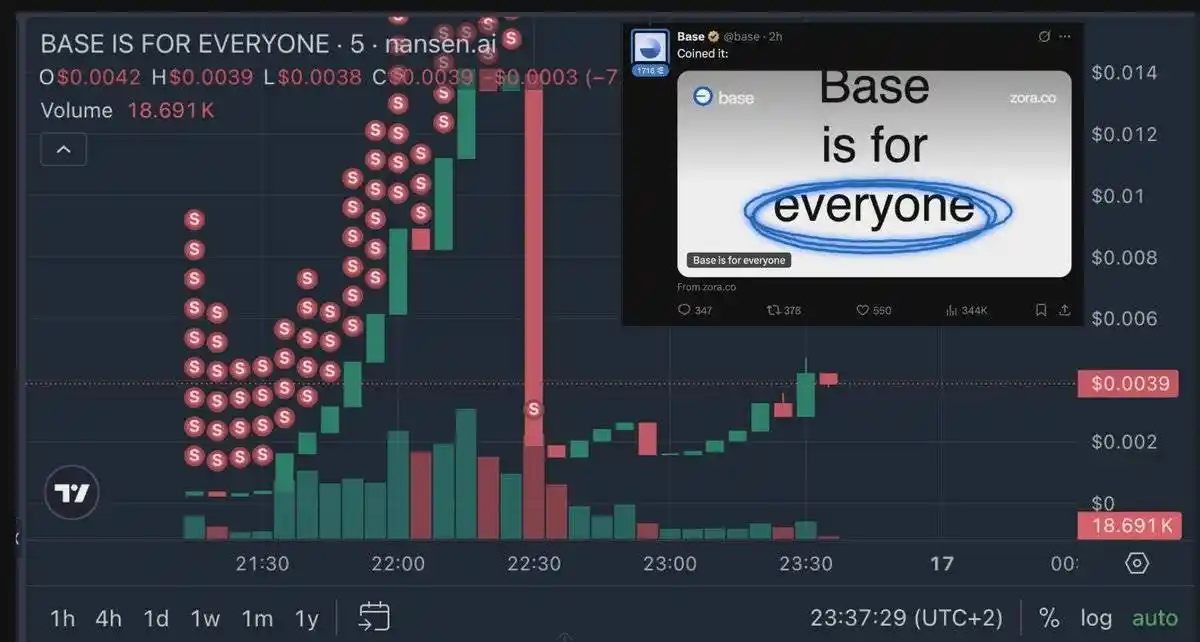 Zora 作为 Base 生态的重要合作伙伴,其 TGE(代币生成事件)机制可能是事件背后的一大推手。社区的「Base-Zora 联合拉盘」猜测虽未证实,但 Base 应公开与 Zora 的合作细节,消除疑虑。