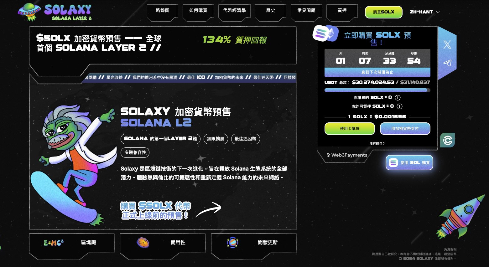 $SOLX仍在预售阶段,在预售结束后再上市DEX及CEX,建议投资者可进入官方网站、X及Telegram了解预售最新资讯。