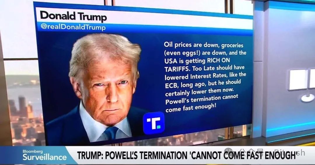 在他的社交媒体平台 Truth Social 上,特朗普再次强调:“让鲍威尔走人,不能再快了!”