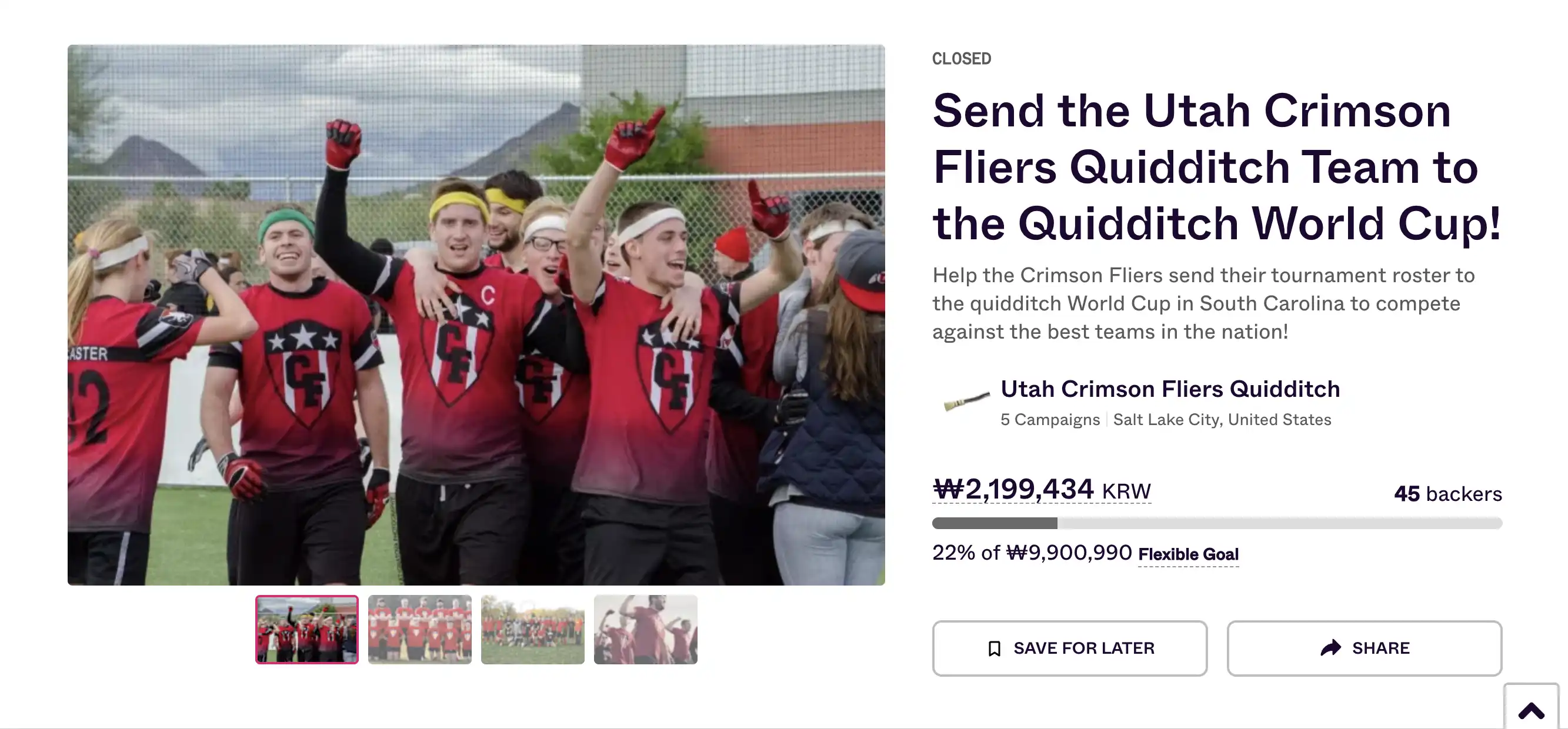 而他曾在 Utah Crimson Quidditch 这支社区魁地奇队伍呆了多年,他们还曾在 indiegogo 上募资去参加魁地奇世界杯,但可惜的是最终仅募得 1450 美元。