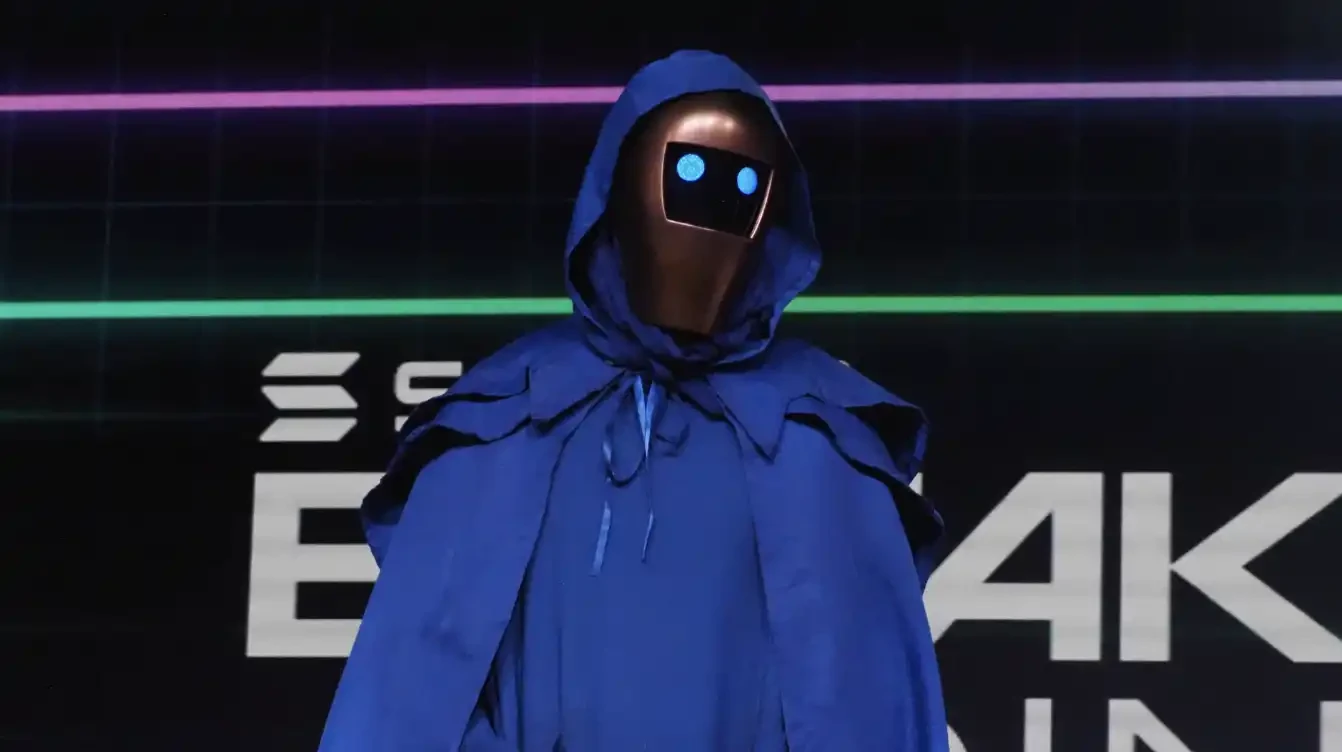 Proph 3 t 戴着自己形象的面具出现在 Solana 活动中