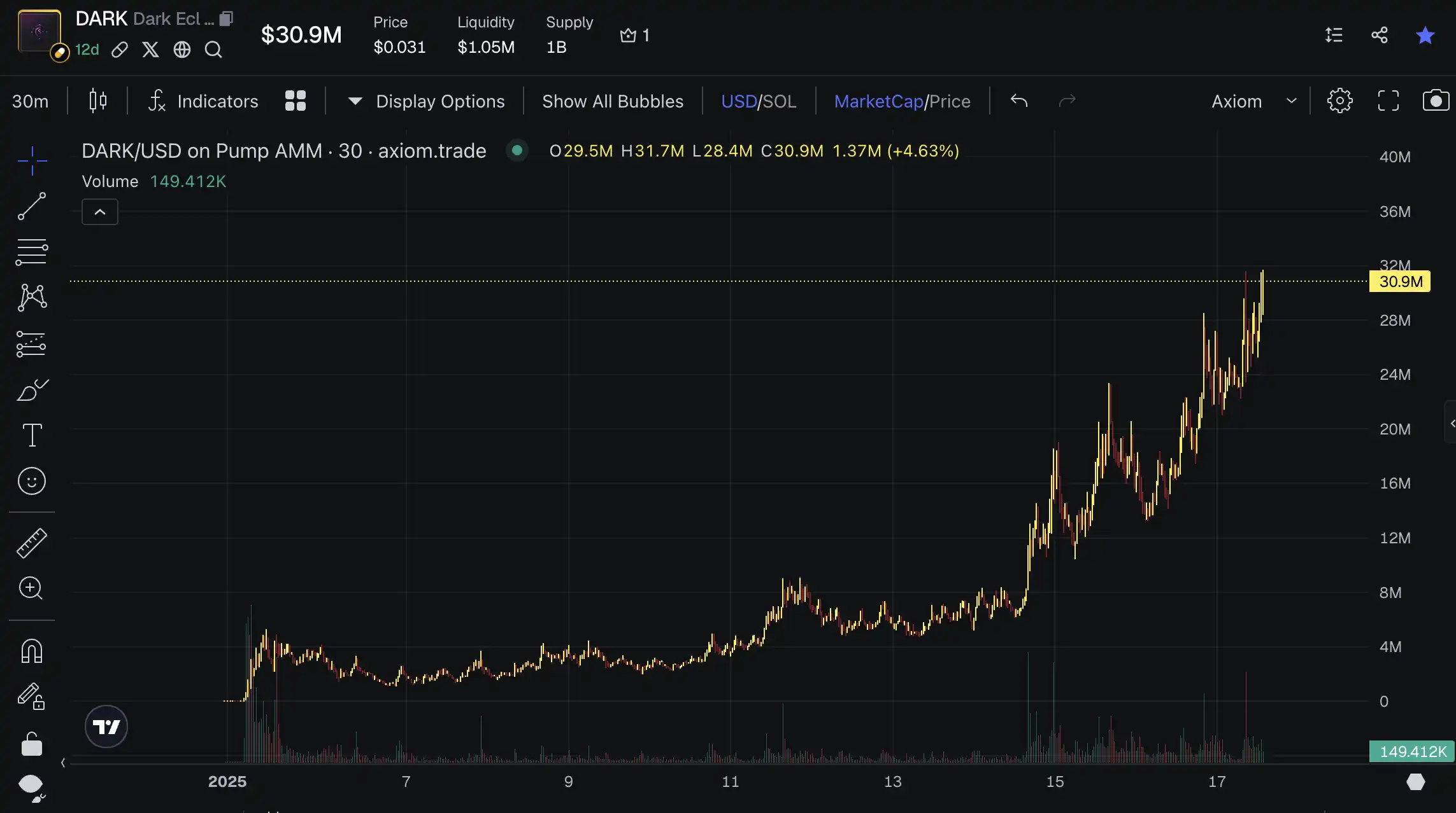 正是 Mtn Capital 与 DARK 的推出时间高度重合,而代币部署在 pumpfun 的时间时 2024 年 11 月 24 日,提早 5 个月的部署必定不是心血来潮。这也不免让社区联想起两者之间的关系,一方面是对国库中躺着的 585 万美元流动资金是否会用于 DARK 的预期,另一方面是看见了 MtnDAO 以及创始人在 Solana 的人脉关系网的展望。