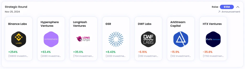其他知名投资方:DWF Labs、Bankless Ventures、Hypersphere Ventures、Draper Dragon、ViaBTC Capital 等。
