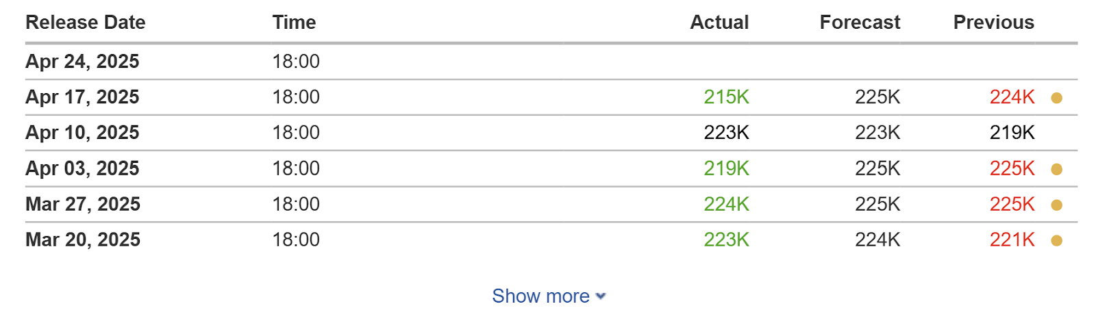 4 月 17 日,美国劳工部公布的初请失业金人数为 21.5 万人,低于市场预期的 22.5 万人,表明劳动力市场仍保持韧性。这一数据被视为美国经济稳定性的重要信号,但也降低了市场对美联储降息的预期,从而抑制了风险资产的短期投机情绪。