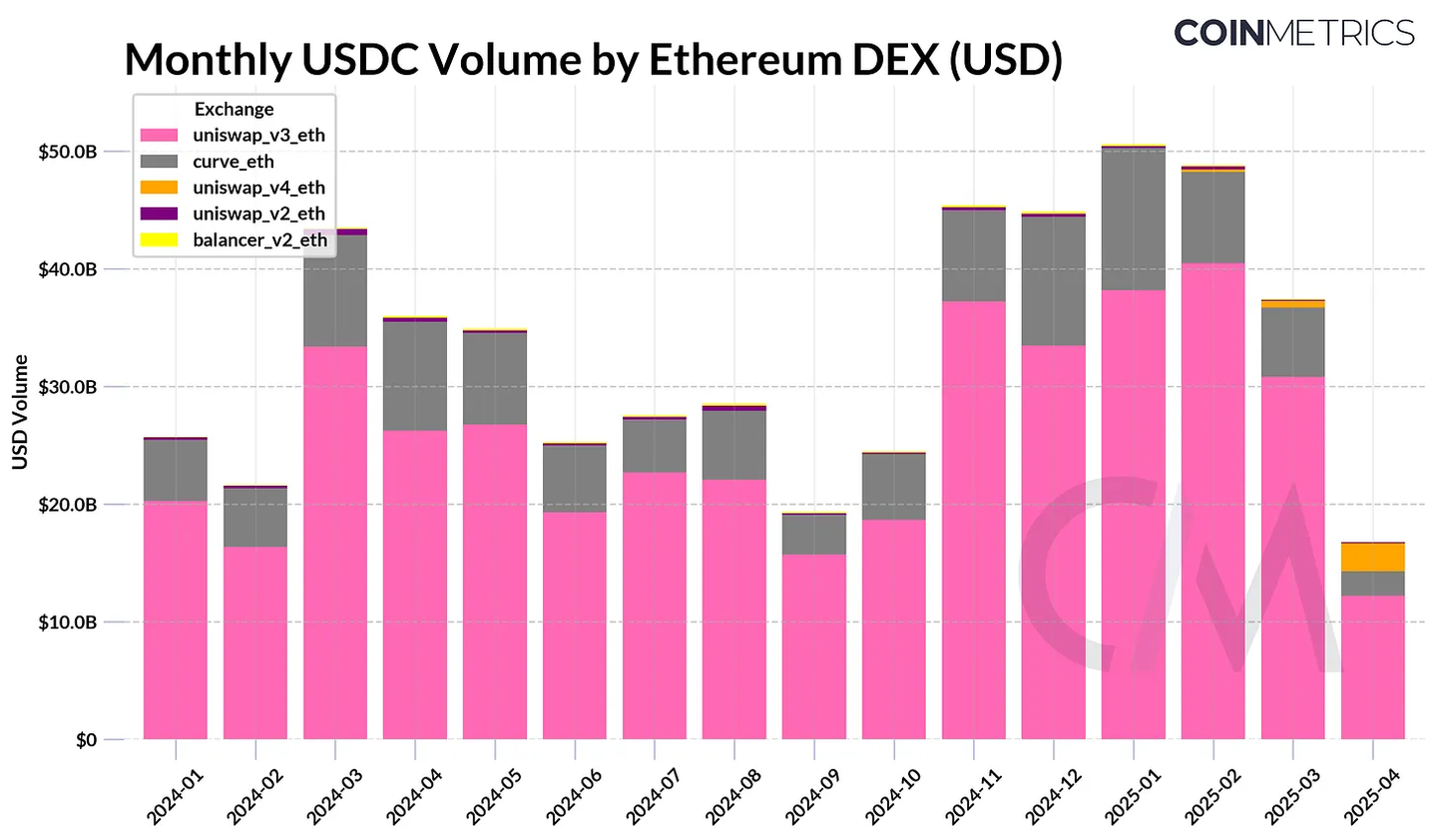 同样,USDC 是各种 DEX 池的关键流动性来源,促进稳定价值的交易。它还日益支撑链上外汇市场,特别是随着 Circle 的 MiCA 合规稳定币 EURC 等其他法币挂钩稳定币的兴起。