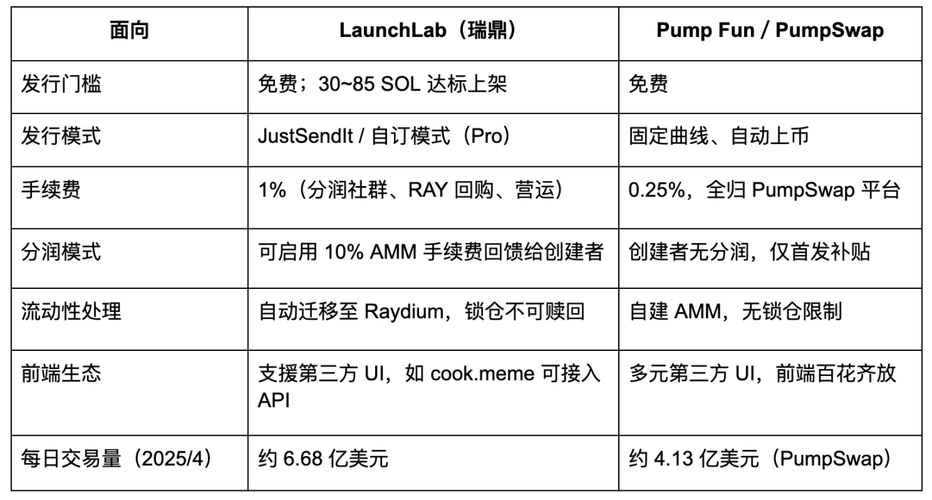 Raydium 的 LaunchLab 看似「迟来的反击」,但整体设计上已针对 Pump Fun 的优势做出系统性应对,不仅提供自订化发币模式,更扩展出以 cook.meme 为代表的开放前端策略,目标就是将流量、手续费、叙事重新带回 Raydium 生态。