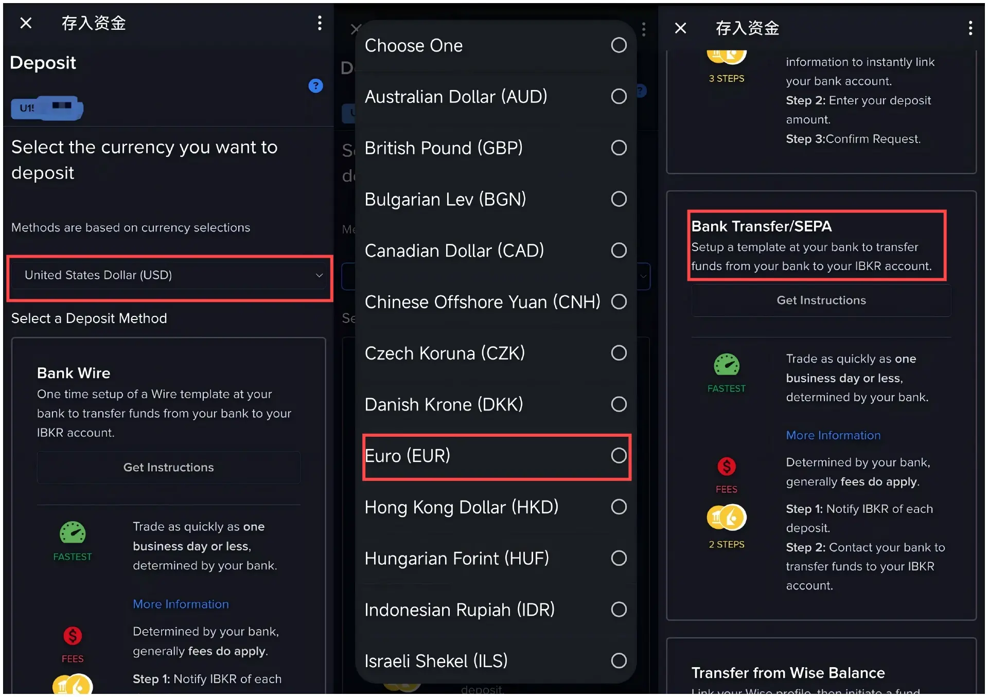 本文就以盈透证券的欧元入金流程为例,全程无损,入金 0 费用(且 通过盈透证券还可以按最优汇率,兑换为美元、港币等其他货币后提现至美卡或港卡等 , 更多管道大家也可自行开发测试)。