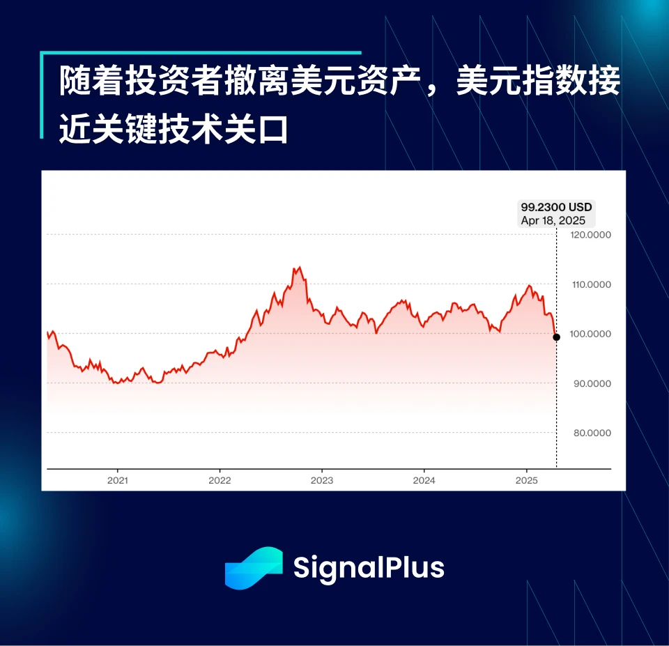 与美元脱钩可能会使 BTC 作为价值储存手段的长期多头叙事再度被市场关注。尽管我们过去一年也曾批评 BTC 越来越像一个高杠杆版的 Nasdaq 指数,但近期它终于开始展现出与股市脱钩的迹象。上周美股整体表现疲弱,但 BTC 价格仍逼近 9 万美元区间。