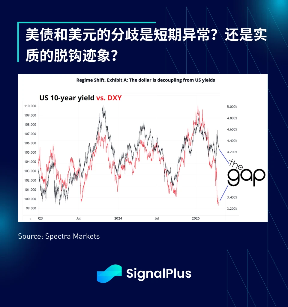 同时,宏观资产相关性也正在瓦解,日元大幅升值(美元兑日元 ~ 140),但日经指数却不跌反升,表示这波日元升值不是典型的套利交易平仓所驱动,而是美元走弱的结果。