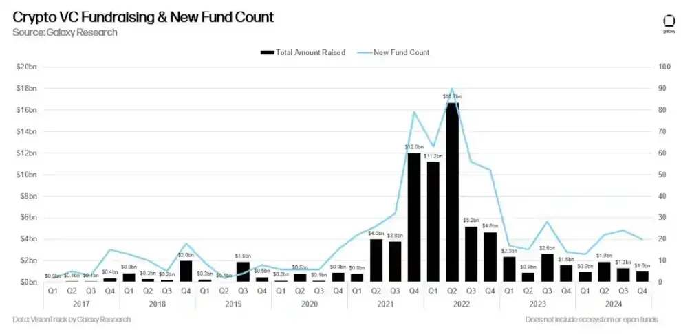 2021 年以来的加密牛市让各大风投组合账面价值飙升,基金回报达到 20 倍甚至 100 倍,加密货币风投突然看起来像是印钞机。LP 蜂拥而入,急于赶上下波浪潮。风投公司募集的新基金规模是之前的 10 倍甚至 100 倍,坚信他们能复制那些超额收益。