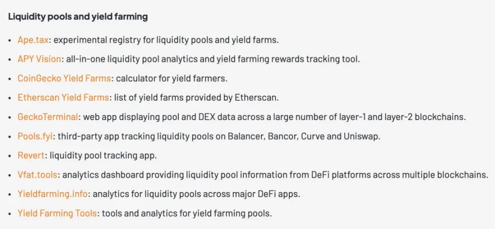 在以上产品之外,vfat Tools 作为开源 APY 计算工具已经运行数年以上,De.Fi、Beefy、RWA.xyz 都各有侧重,展示项目方 APY,收益工具的重心,随着时间变化,已经越来越集中在 YBS 等生息资产。