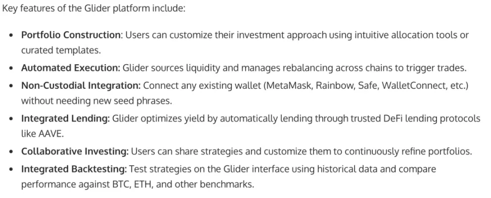 但这不是新鲜业态,帮用户理财是长久的生意,TradFi 如此,DeFi Summer 也如此,目前 Glider 还处在内部研发阶段,仅从 PR 稿内容可以描绘其大致思路: