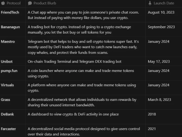你可以在仪表盘上追踪项目的使用情况。但叙事存在于其他地方。为了理解这一点, 我们必须重新回忆它们真正意义非凡的那一刻。FriendTech 将社交影响力转化为流动性,Pump.fun 改变了代币发行规则,而 Farcaster 则不仅仅是一款社交应用,更是一份web3独立宣言。