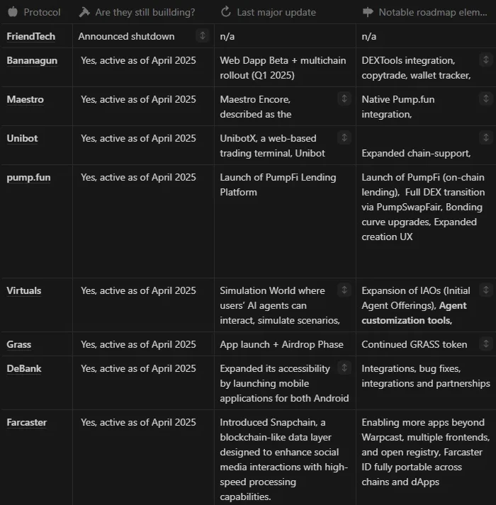 不幸的是,FriendTech 率先放弃,已于 2024 年 9 月正式关闭。 其余的项目仍在悄无声息地增长,不是在推特的推送时间线上,而是在项目更新日志中。
