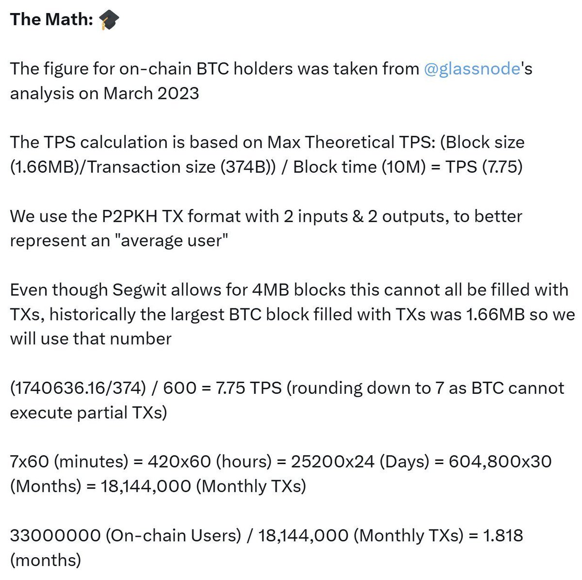 举例来说,若所有持币者现在都想移动他们的币,交易队列将超过两个月;如果全球每个人只进行一次交易,队列将超过二十年。这意味着自托管几乎不可能实现,大众将不得不通过托管服务商接入,这完全违背了比特币最初的存在意义。