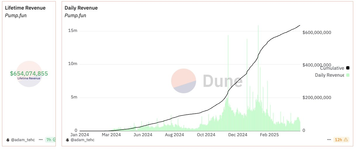 Pump.fun 迄今已创造约 6.5 亿美元的收入。4 月份日收入为 100 万至 270 万美元,平均在 150 万美元至 200 万美元的较高区间内。