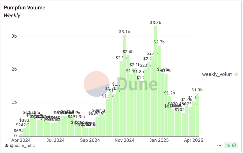 随着 SOL 价格走高以及特朗普事件期间交易量下降,4 月交易量开始显著回升,而且随着 Pumpswap 的推出以及几乎即时的 迁移 ,交易体验变得更加顺畅。这可以从每周总交易量的增加中看出。