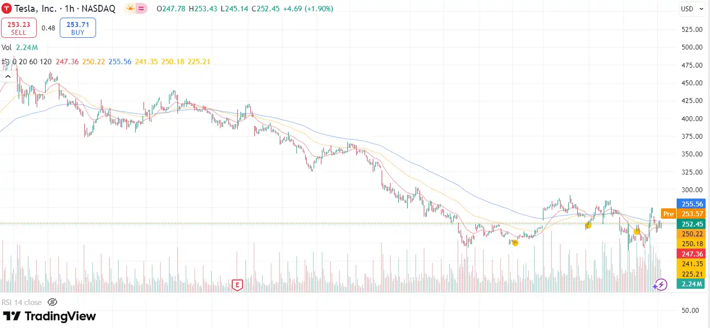 在特朗普的「代言」下,特斯拉股价周二盘中回升,截至收盘上涨 3.79% 。