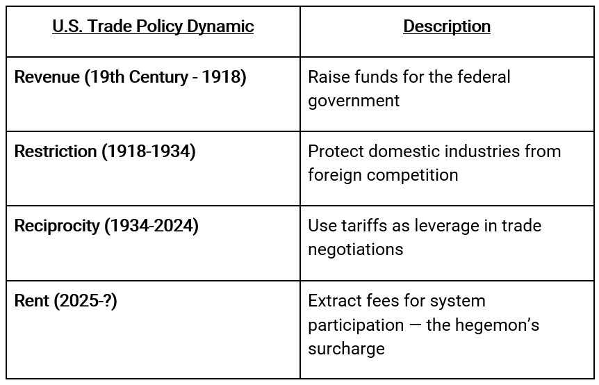租金将关税重新定义为一种全球经济参与的按服务收费模式,而非一种为国家提供资金(收入)、保护国内生产者(限制)或确保互惠准入(互惠)的手段。这种新模式本质上……