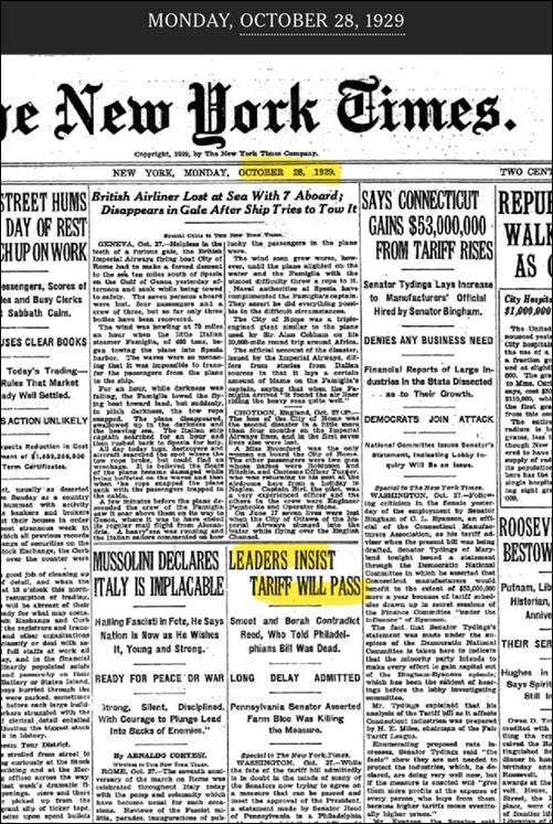 1929 年的股市崩盘引发了经济衰退,而关税则使这场衰退演变成了大萧条。