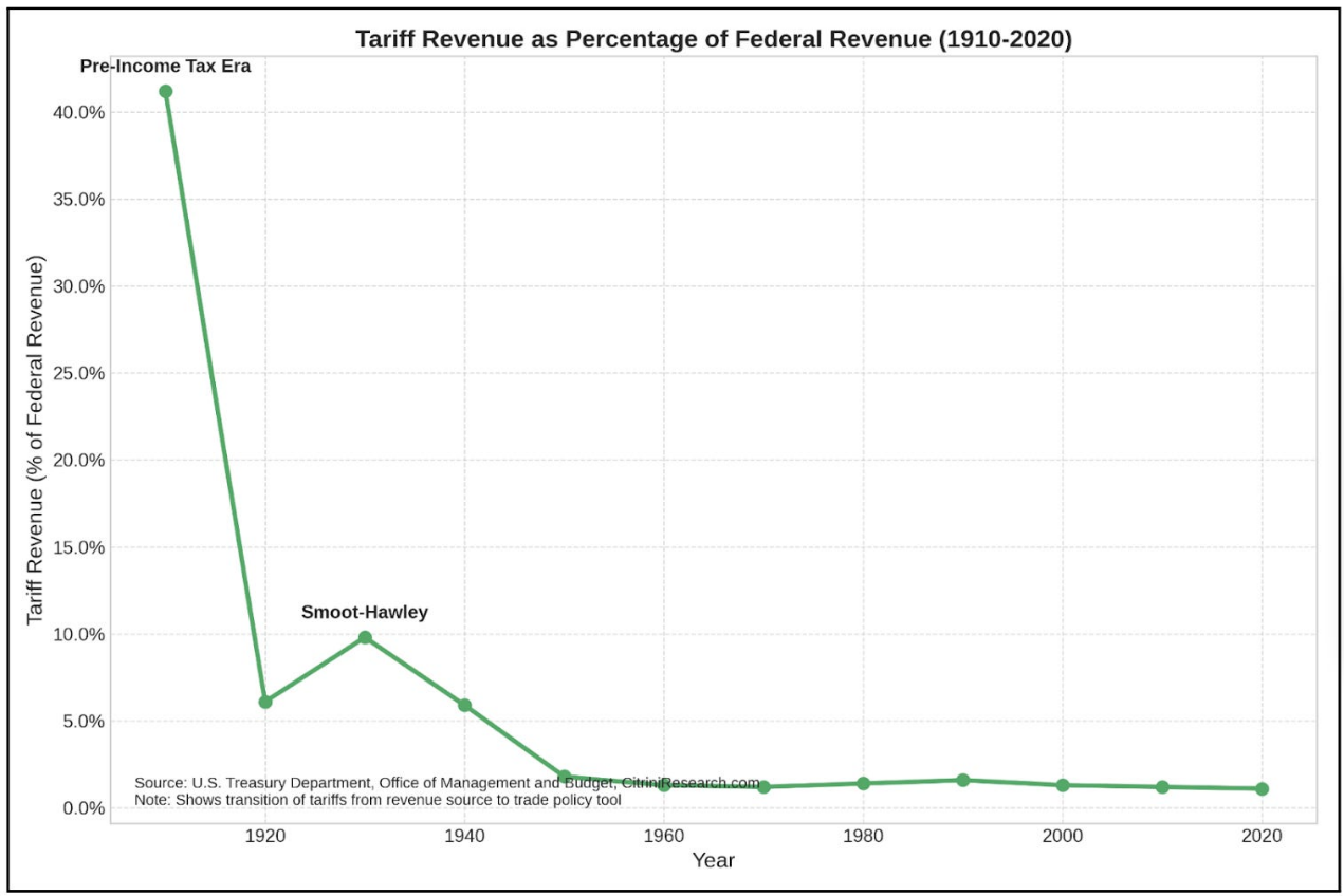 到 1934 年,所得税逐渐取代关税,成为联邦资金的主要来源——新政和二战加速了这一转变。关税成为全球贸易谈判中的筹码。