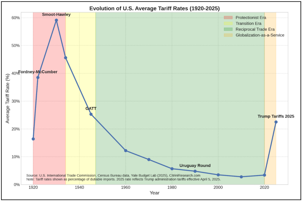 虽然自二战后的互惠时代以来,世界发生了翻天覆地的变化,但塑造美国关税历史的根本矛盾依然存在。今天正处于与 1930 年、1947 年和 1971 年改变贸易政策的拐点。正如那些拐点是由美国在全球秩序中地位的转变所驱动一样,今天的关税复苏反映了经济实力的又一次调整。然而,两者之间存在一个关键的区别:美国正在主动打破其自身所构建的体系。