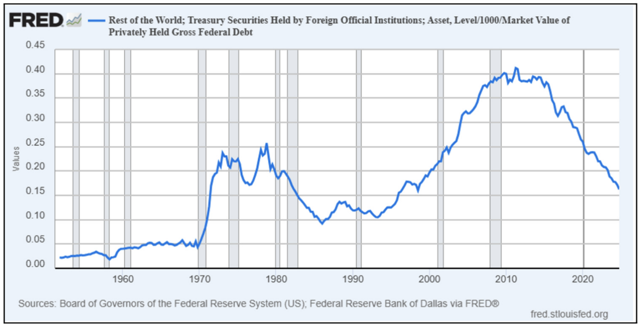 面对这一潜在现实,各国官方持有的美国国债多年来一直在下降也就不足为奇了:
