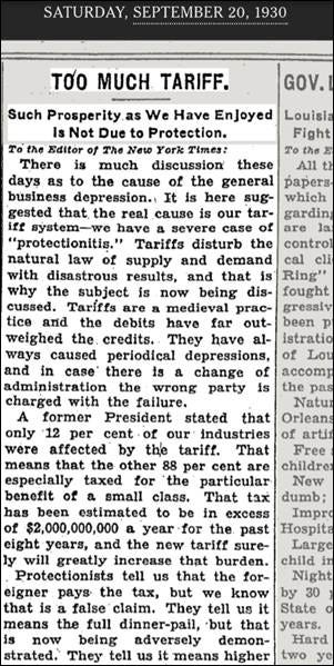 然而,1930 年 6 月 17 日,胡佛还是签署了这项法案,尽管政治自杀并非一蹴而就,但此举已经足够了。这项关税法案的不受欢迎程度迅速增长,从《纽约时报》上频繁出现的读者来信中可见一斑: