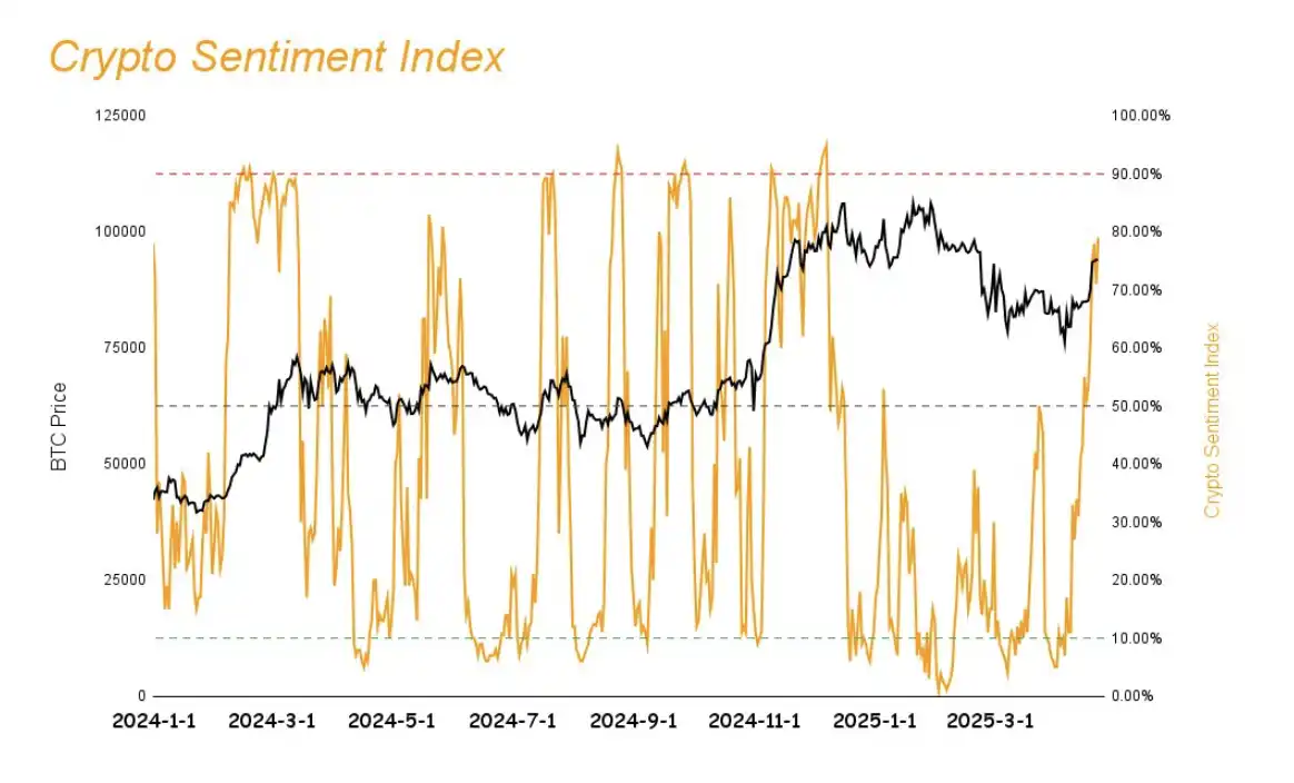 本周加密货币市场迎来了显著的上涨趋势,市场情绪从低迷状态转向积极。这一变化主要受到美国政策缓和及新 SEC 主席对加密行业的友好态度影响。随着政策环境的变化,投资者对市场的信心逐渐恢复,导致资金流入加密货币市场,推动价格上涨。然而,市场仍需警惕经济衰退和关税政策的不确定性,这些因素可能会继续影响市场的走势。投资者在享受市场增长的同时,也需保持谨慎,以应对可能的波动。