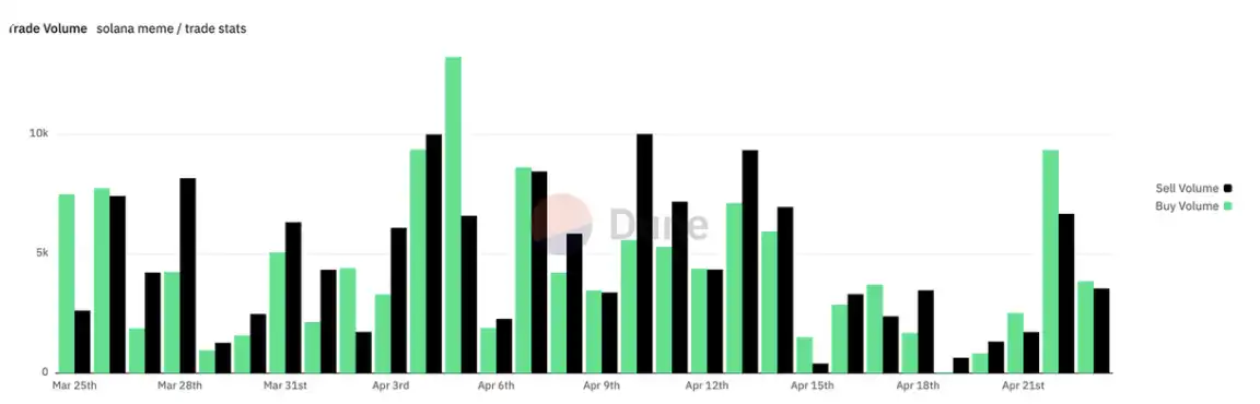 Solana 链上 Meme 币买卖情况(数据来源:https://dune.com/pseudocode88_aux/solana-meme-token-analysis)