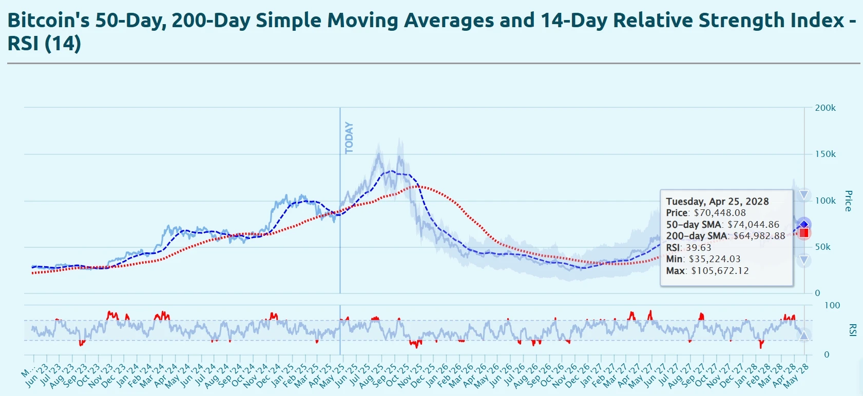 截至 4 月 25 日,比特币的关键移动平均线如下:
