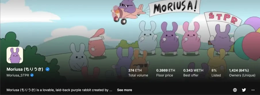 Moriusa NFT 正是看中了这一痛点,早在今年一月,STPR 就向粉丝宣布将启动一个“海外开发项目”,而选择发布在海外平台 Opensea 上,正可以利用日本本土粉丝的热度带动 NFT 的链上热度,从而引起海外市场对这个本土 IP 的关注。