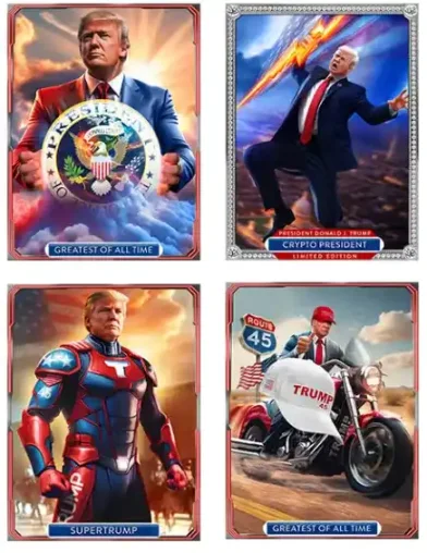特朗普最早接触加密应该是在 2022 年 12 月,他推出了一系列颇具个人风格的 NFT 交易卡。这些以超级英雄等形象呈现的数字收藏品,由特朗普的老友、The Learning Annex 创始人比尔·赞克提议发起,一经推出便引发收藏界抢购热潮。现在看来,这次成功的试水或许让特朗普嗅到了布局加密的商机。