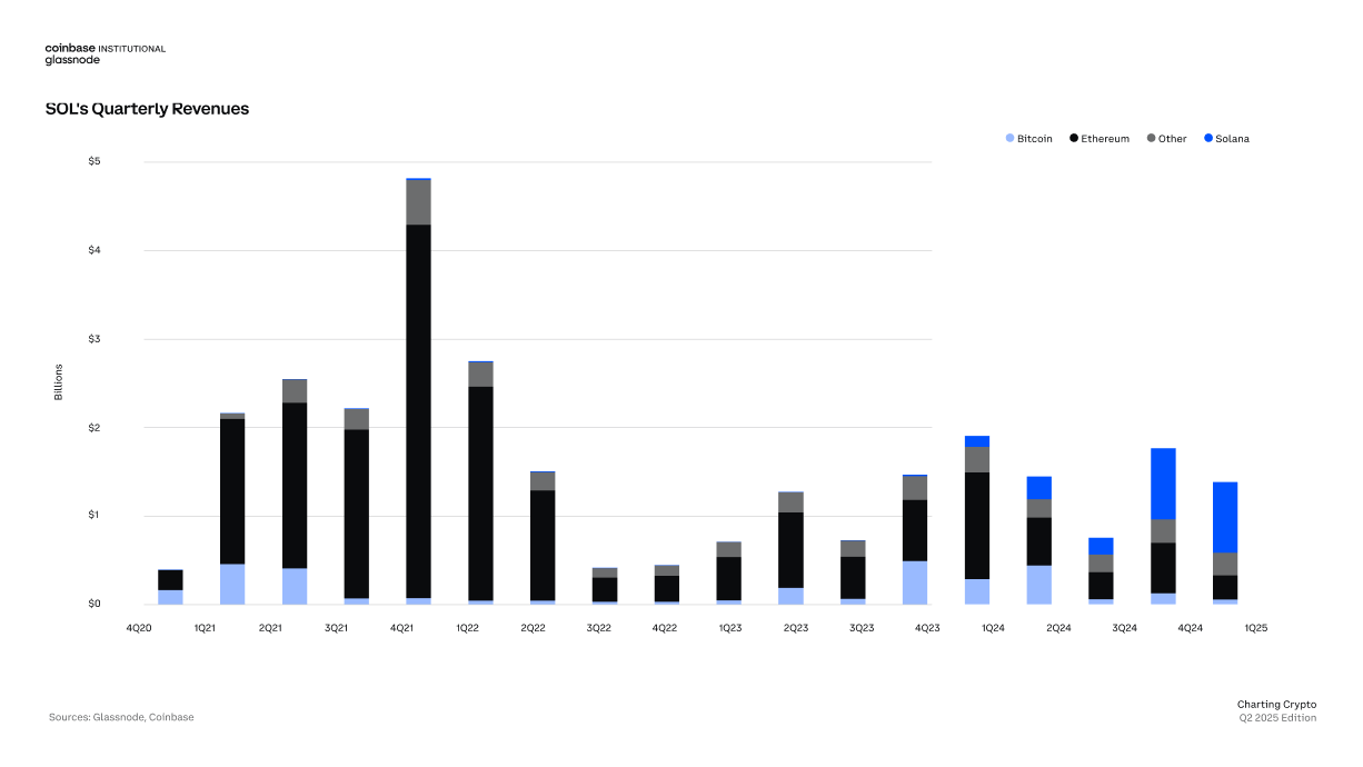 Solana 在第一季度超越其他所有区块链,其收入超过比特币、以太坊和其他区块链的总和。