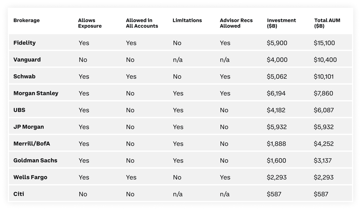 值得注意的是,大型券商的投资限制暗示,如果准入限制放宽,将出现一波潜在的需求浪潮。