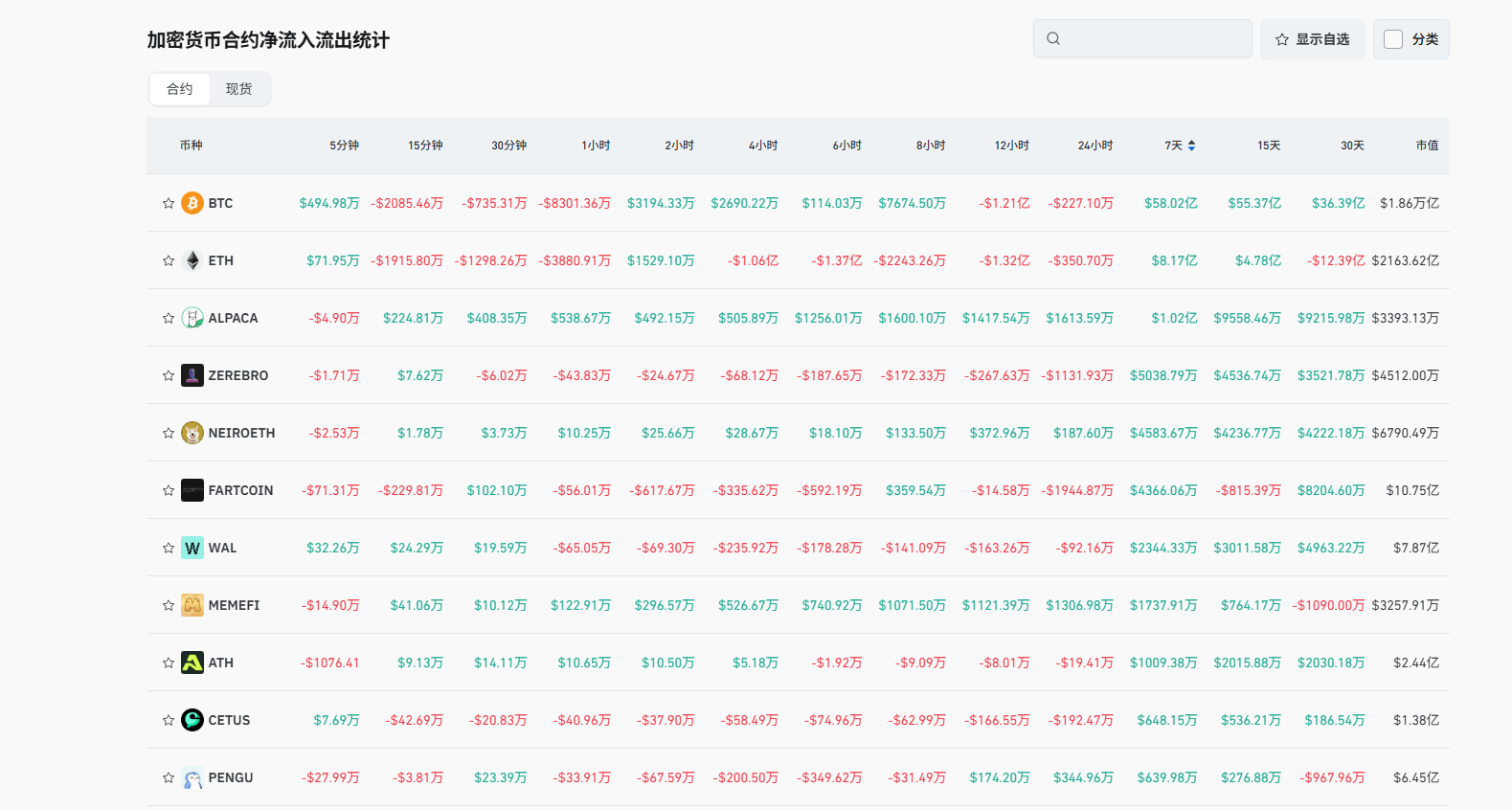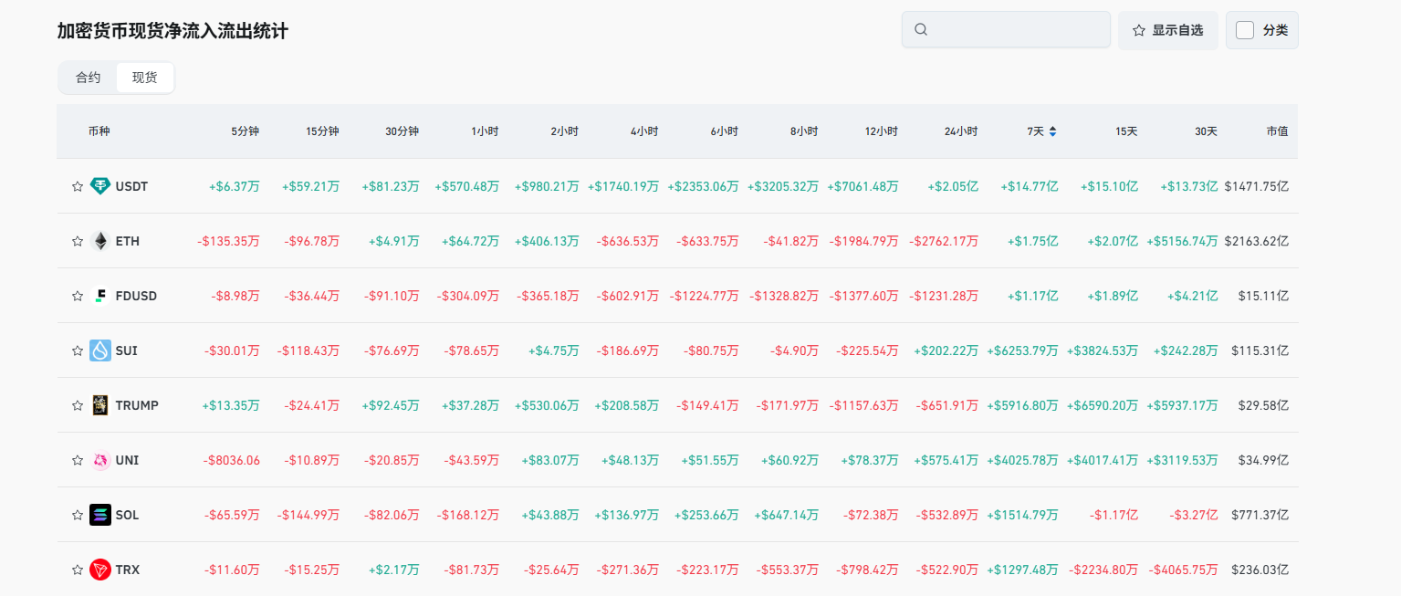 不过在交易所的资金流动上,Sui生态的资金涌入较为明显。根据Coinglass的数据显示,近七天内SUI的现货资金流入达到6286万美元,排名所有币种的第四位,仅次于USDT、ETH、FUSD。而在近七天的合约的资金流入排行榜当中,WAL、MEMEFI、CETUS等几个Sui网络的生态代币也都跻身前十,也进一步反映出Sui生态的资金活跃度。