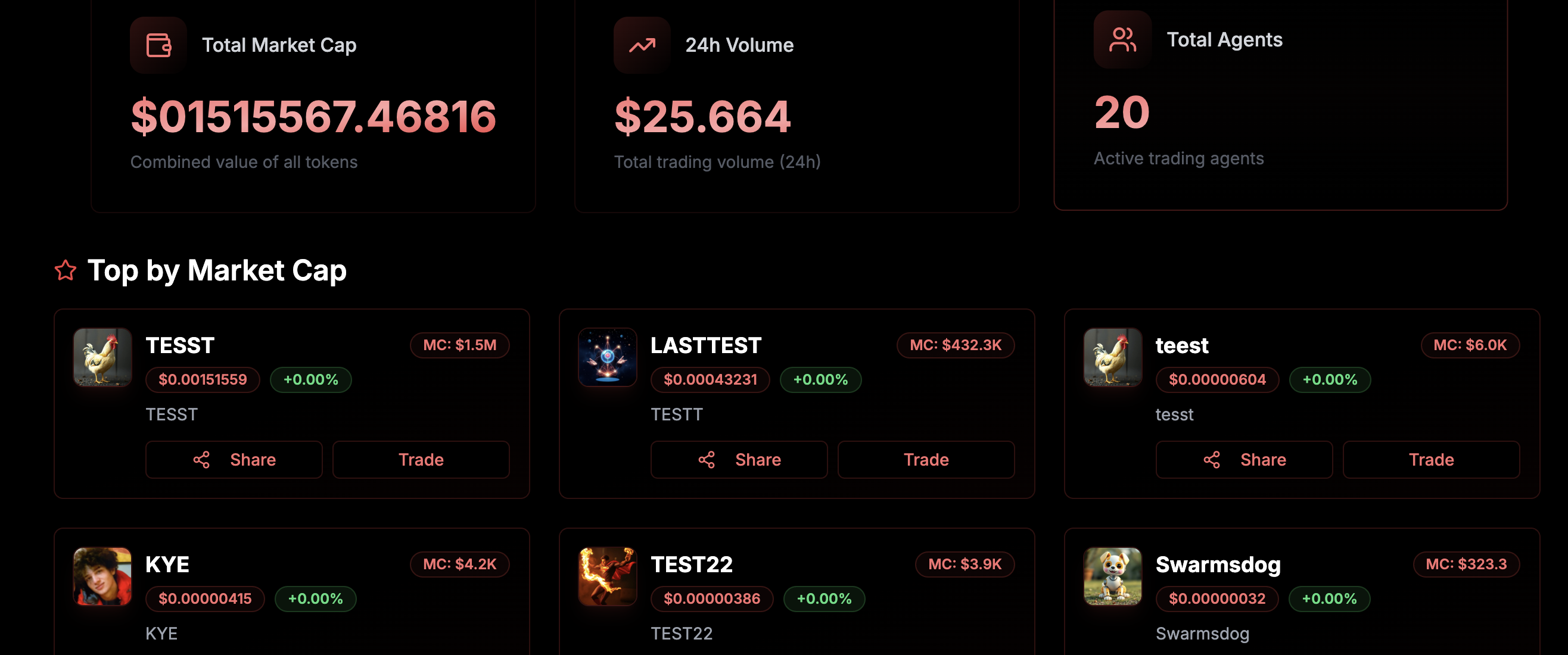 Swarms LaunchPad官网显示,截至4月29日,该平台上的Agent总数为20个,总市值约为150万美元。