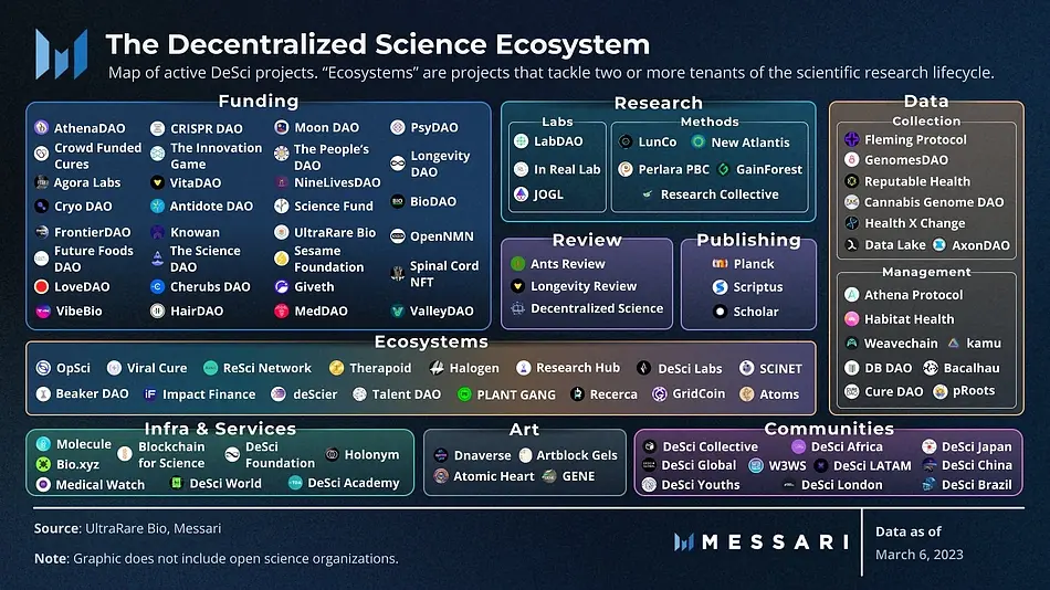 DeSci 的潜力已吸引加密行业与学术界的双重关注。以太坊创始人 Vitalik Buterin 多次公开强调 DeSci 对“开放科学”的颠覆性意义;币安创始人 CZ、BitMEX 联合创始人 Arthur Hayes、Coinbase 首席执行官 Brian Armstrong 等加密领袖则通过投资和站台为其背书。此外,Paradigm 联合创始人 Fred Ehrsam 和前 Coinbase CTO Balaji Srinivasan 等顶尖投资人,已将 DeSci 视为“下一代科研基础设施”的核心方向。头部VC如 a16z、Polychain Capital 和 Digital Currency Group 也纷纷布局,其中生物医药类DAO(如 VitaDAO)和去中心化数据协议(如 Ocean Protocol)成为资本重点押注对象。