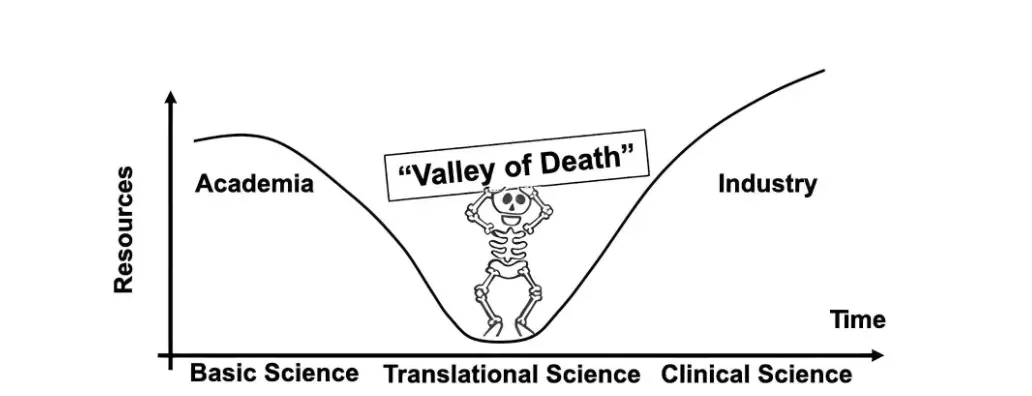 产学研“死亡之谷”,来源:Translational Medicine Communications