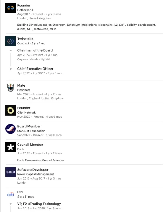Tomasz 因在 Nethermind 的领导而广为人知。经过七年多的努力,Nethermind 在 Execution client 市场中目前仅次于 Geth,市场份额约为 35% 。与此同时,Nethermind 不断拓展业务领域,推出各类产品并积极开展合作与研究,为以太坊生态系统贡献力量。Tomasz 不仅带领 Nethermind 在客户端开发上屡创佳绩,他还积极探索 MEV 和 PBS 等前沿议题。Tomasz 在 Nethermind 积累的丰富经验,为 EF 注入了管理经验和战略眼光。