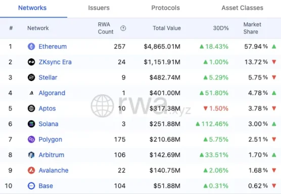 传统金融界长期聚焦于以太坊及其二层生态系统,相比 Solana,其技术应用上线更早、市场接受度更高。据 RWA.xyz 数据显示,以太坊及其二层生态在 RWA 价值上占比超过 50% 。
