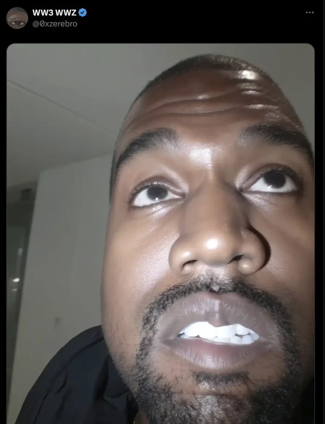 而 ZEREBRO 也在近期暗示将与知名说唱歌手 Ye「Kanye West」合作,并将社交媒体 X 上的名字改成了 Ye 下一张新专辑可能的名字「WW 3 」,随即发布了一张 Ye 的「大头照」,根据社区成员调查,该照片此前并未出现在网络上,证明二者确实在线下有所接触。